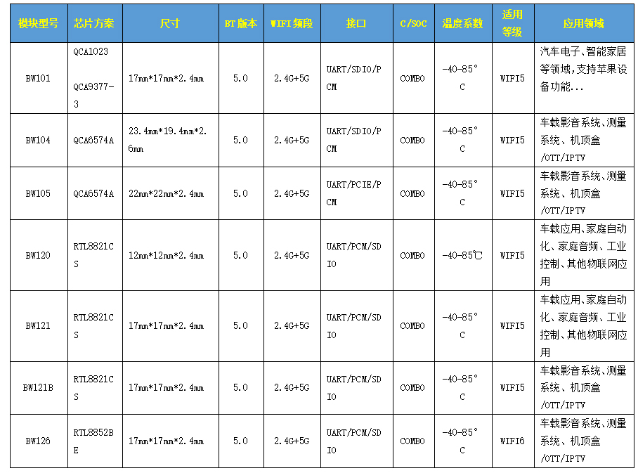 汽車電子行業(yè)的銷冠產(chǎn)品:BW101、BW104、BW126
