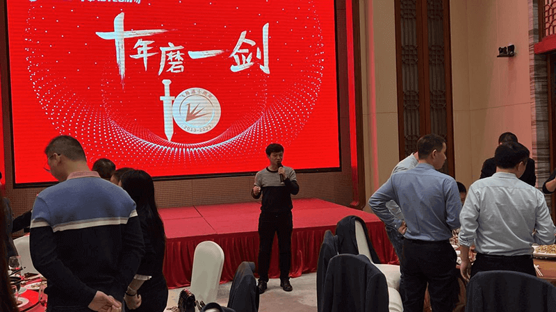 慶典的下半程是飛易通的創(chuàng)始人兼總經(jīng)理講述飛易通成立這十年里的風(fēng)雨歷程,在過(guò)去的十年里,飛易通的人數(shù)從一開(kāi)始的3人團(tuán)隊(duì)變成了200+人的大家庭。