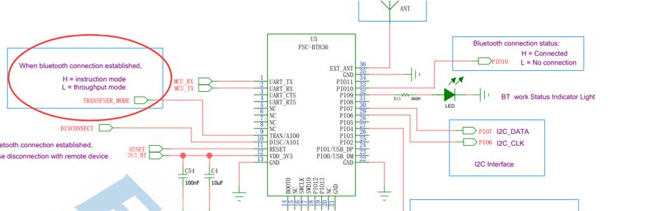 模塊未連接之前,先發(fā)送 AT+PIOCFG=1,1打開引腳功能,高電平指令模式,低電平透?jìng)髂J?/p>