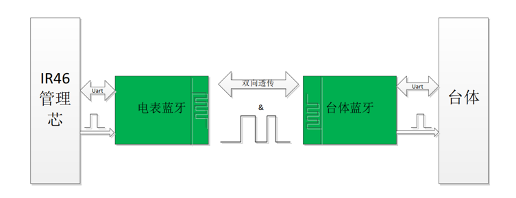 藍(lán)牙模塊從計(jì)量端采集的數(shù)據(jù)通過UART串口透傳給管理端實(shí)現(xiàn)數(shù)據(jù)傳輸。