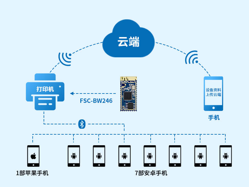 FSC-BW246已完美實現(xiàn)藍(lán)牙打印功能和云打印功能二合一。FSC-BW246支持經(jīng)典藍(lán)牙和BLE藍(lán)牙,兼容性強(qiáng),自主協(xié)議棧做到了支持7個安卓手機(jī)和1個蘋果手機(jī)同時連接。FSC-BW246的云打印功能已經(jīng)對接物流信息服務(wù)樞紐的快遞100,打印機(jī)廠商不再需要單獨(dú)和每一家快遞公司去完成復(fù)雜的對接工作,而且FSC-BW246在不斷完善各快遞平臺的對接服務(wù),做好云端和打印機(jī)廠商的橋梁。