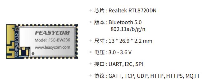 FSC-BW236成為了您不二選擇,此模塊支持Wi-Fi的2.4G和5G頻段,而且支持藍(lán)牙5.0 BLE,可以實現(xiàn)和FSC-BW246的PIN腳兼容,當(dāng)您的客戶有對5G頻段的需求,那么FSC-BW236就可以幫您實現(xiàn)此功能的云打印機(jī)功能。