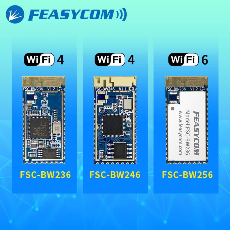 FSC-BW236是一款低功耗單芯片無線藍(lán)牙和WiFi組合模塊,雙頻WiFi(2.4GHz&5GHz),WLAN802.11a/b/g/n,藍(lán)牙5.0,支持UART、I2C和SPI等接口傳輸數(shù)據(jù),支持藍(lán)牙SPP、GATT以及WiFi TCP、UDP、HTTP、HTTPS、MQTT等協(xié)議,802.11n最快速率可達(dá)到150Mbps,802.11g、802.11a可達(dá)54Mbps,支持外置天線。