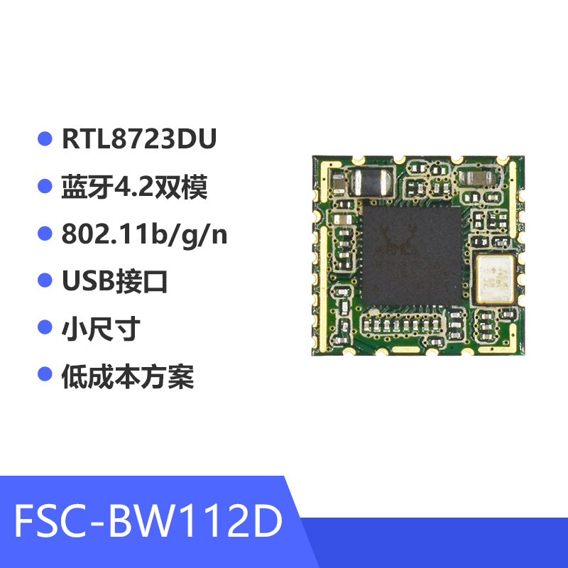 FSC-BW112D是低成本藍(lán)牙加Wi-Fi二合一的RF模塊,它支持藍(lán)牙4.2雙模標(biāo)準(zhǔn)和Wi-Fi 802.11 b/g/n標(biāo)準(zhǔn),支持SPP/GATT/TCP/UDP/HTTP等協(xié)議,需要在外部處理器中安裝軟件驅(qū)動(dòng)程序才能啟用藍(lán)牙和Wi-Fi功能。