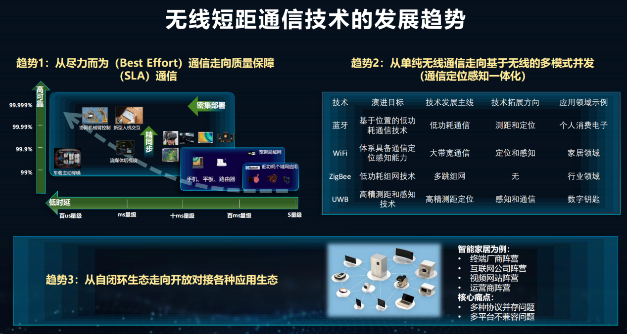 海思表示,星閃將為鴻蒙生態(tài)帶來(lái)六大革新體驗(yàn):智慧屏與手機(jī)、平板、音箱等設(shè)備的無(wú)縫互動(dòng);智慧音箱與手機(jī)、平板、電視等設(shè)備的高質(zhì)量音頻傳輸;智慧手表與手機(jī)、平板、電視等設(shè)備的快速數(shù)據(jù)同步;智慧汽車(chē)與手機(jī)、平板、音箱等設(shè)備的高速率數(shù)據(jù)共享;智慧家居與手機(jī)、平板、電視等設(shè)備的低功耗控制;智慧工業(yè)與手機(jī)、平板、電視等設(shè)備的精準(zhǔn)同步控制及下圖趨勢(shì):